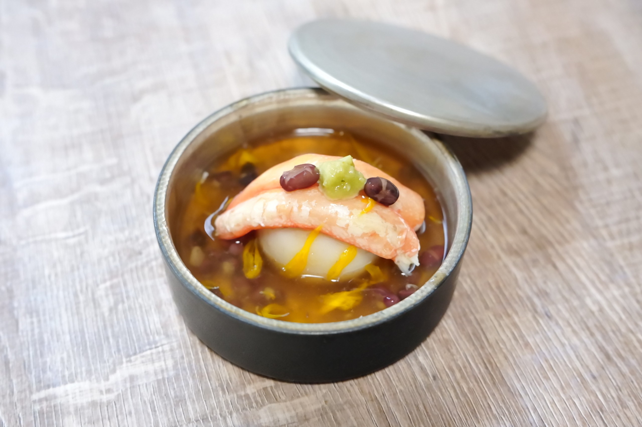 里芋万頭は、素材の味を活かした優しい味付けなので、今回は餡かけにひと工夫を加えました。