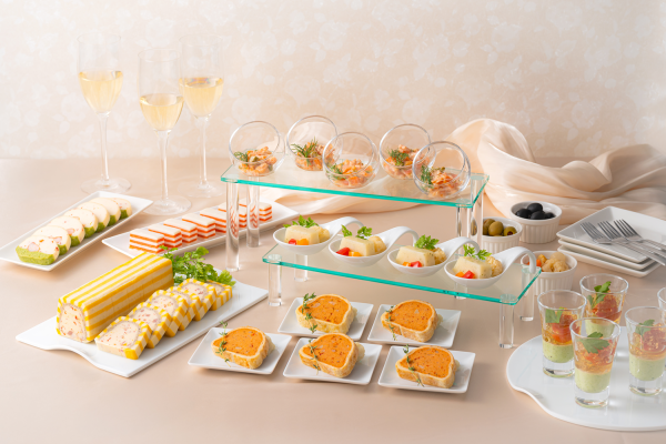 合鴨スモークの濃厚な旨味と、オレンジピールの爽やかな香りが織りなす上質な味わい。生クリームとクリームチーズで仕上げた滑らかな口当たりが、素材の個性を包み込みます。ブラックペッパーが味を引き締め、白と黄色の美しいストライプが、テーブルに華を添えます。前菜やワインのお供に、ひと皿で印象を残す逸品です。