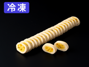 鶏そぼろとかぼちゃペースト、ダイスかぼちゃを加えたすり身を芯にし、なめらかな高野豆腐入りのすり身でやさしく