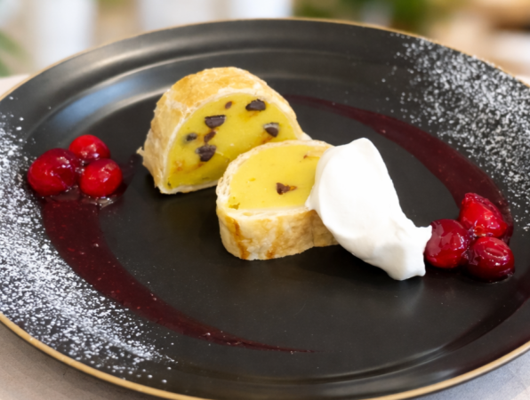 チョコチップのほどよい甘さと食感がアクセントになる、軽やかなデザートパイです。